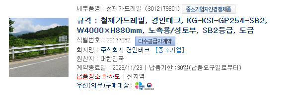 철제가드레일 KG-KSI-GP254-SB2 저탄소제품 인증
